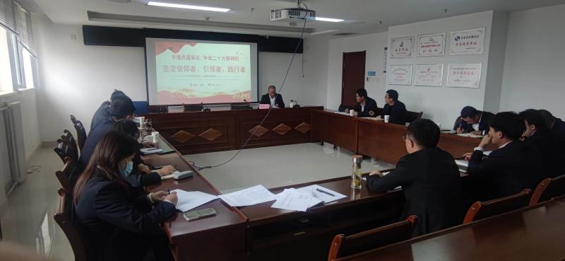 劉新文強調,一是要把學習好、宣傳好、貫徹好黨的二十大精神作為當前和今后一個時期的首要政治任務抓緊抓實抓細,深刻領悟“兩個確立”的決定性意義,當好“兩個確立”的忠誠擁護者、“兩個維護”的忠誠捍衛者,要始終牢記“三個務必”,深入學習黨的二十大報告提出的重大理論觀點、重大目標任務、重大戰略舉措,準確把握報告的豐富內涵、精神實質、實踐要求。二是充分領會習近平新時代中國特色社會主義思想的真理力量和實踐偉力,學會在新形勢、新要求中把握規律和大勢,弘揚偉大建黨精神,抓住時機、順勢而為,扎實推動習近平新時代中國特色社會主義思想和黨的二十大精神入心入腦、落地落實。三是要緊貼崗位結合自身實際,做到知行合一,領導班子及各職能、事業部負責人要進一步明確責任,強化主責意識,對各自主抓的工作進一步細化任務、明確時限、壓實責任,拉清單、建臺賬,抓督導、強推進,確保各項工作高質量完成。四是要以“闖”的精神、“創”的勁頭、“干”的作風,打造一支能打硬仗、清風正氣的干部員工隊伍,爭取達到思想一致、步調一致、方向一致、結果一致的目標效果。在公司發展上抓住機遇,提升公司整體凝聚力,從而達到提質增效的目的。
