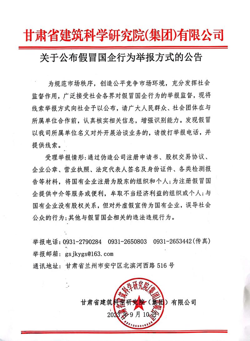 關于公布假冒國企行為舉報方式的公告