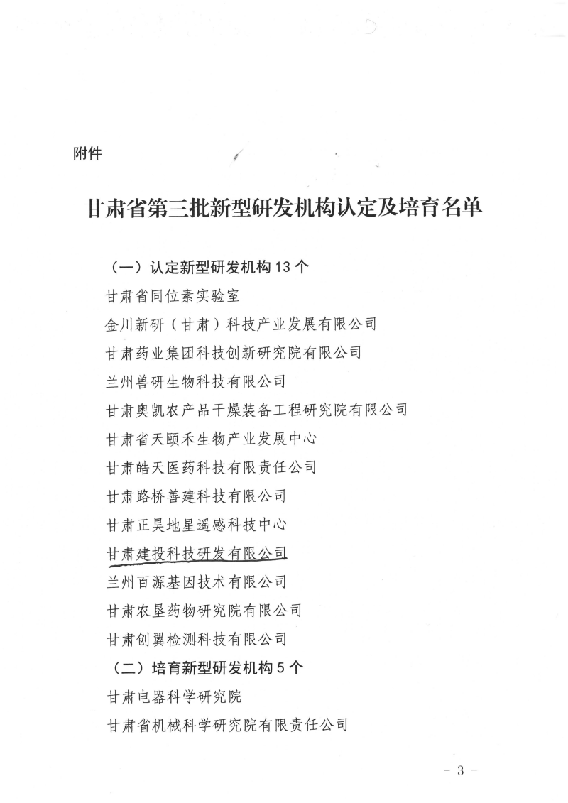 近日,甘肅省科技廳公布了全省第三批新型研發(fā)機(jī)構(gòu)及培育對象,全省共有13家單位通過認(rèn)定,甘肅建科院科技研發(fā)公司榜上有名。這也是甘肅建投系統(tǒng)內(nèi)首個(gè)被認(rèn)定為省級(jí)研發(fā)機(jī)構(gòu)的單位。