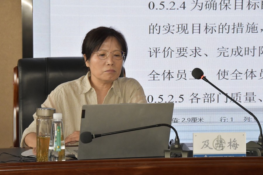 培訓會上,及清梅老師依據《質量管理體系要求》《工程建設施工企業質量管理規范》《環境管理體系要求及使用指南》和《職業健康安全管理體系要求及使用指南》標準、相關法律法規的要求,結合公司實際,通過經驗分享及示例講解的方式對公司管理體系文件及內審過程工作進行了專項培訓。