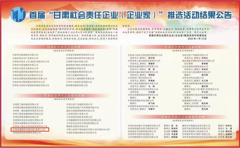 日前,由甘肅日報社、甘肅省人民政府國有資產監督管理委員會、甘肅省工商業聯合會、甘肅省社會科學院聯合舉辦的“首屆甘肅社會責任企業(企業家)推選活動”已順利結束,甘肅省建筑科學研究院(集團)有限公司榮獲“甘肅社會責任企業提名”。