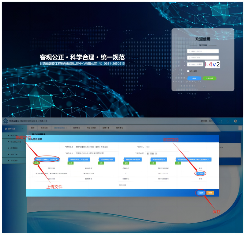 “能力驗證系統(tǒng)”分為管理端和用戶端兩個模塊,參加能力驗證報名的單位可通過甘肅省建筑科學(xué)研究院(集團)有限公司官方網(wǎng)站進(jìn)入“能力驗證系統(tǒng)”進(jìn)行注冊并登錄。通過“能力驗證系統(tǒng)”即可完成能力驗證報名、資料下載、數(shù)據(jù)上傳以及結(jié)果查詢等業(yè)務(wù)。甘肅省建設(shè)工程檢驗檢測認(rèn)證中心有限公司可使用管理端對報名單位信息進(jìn)行審核與批復(fù)。該系統(tǒng)替代了以往使用郵寄紙質(zhì)材料的傳統(tǒng)資料收集方式,使用數(shù)字化網(wǎng)絡(luò)平臺極大簡化了收集過程,提高了工作效率,提升了企業(yè)信息化、數(shù)字化建設(shè)水平。