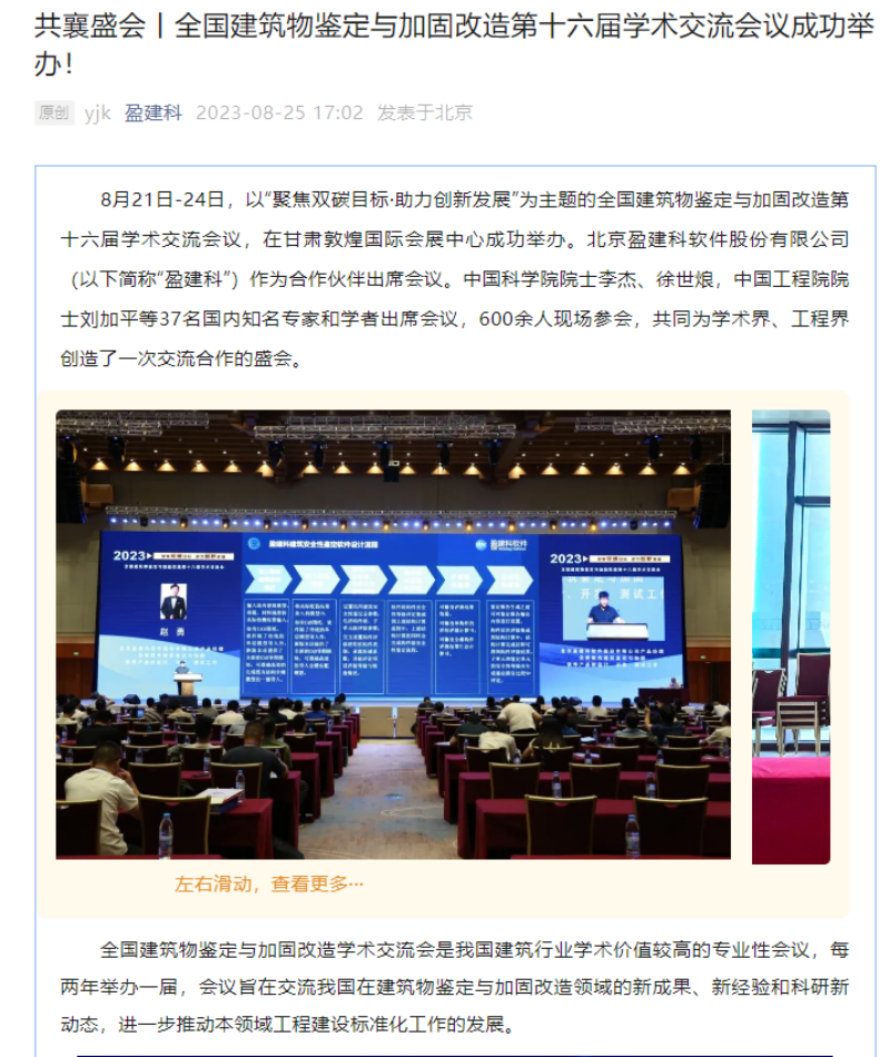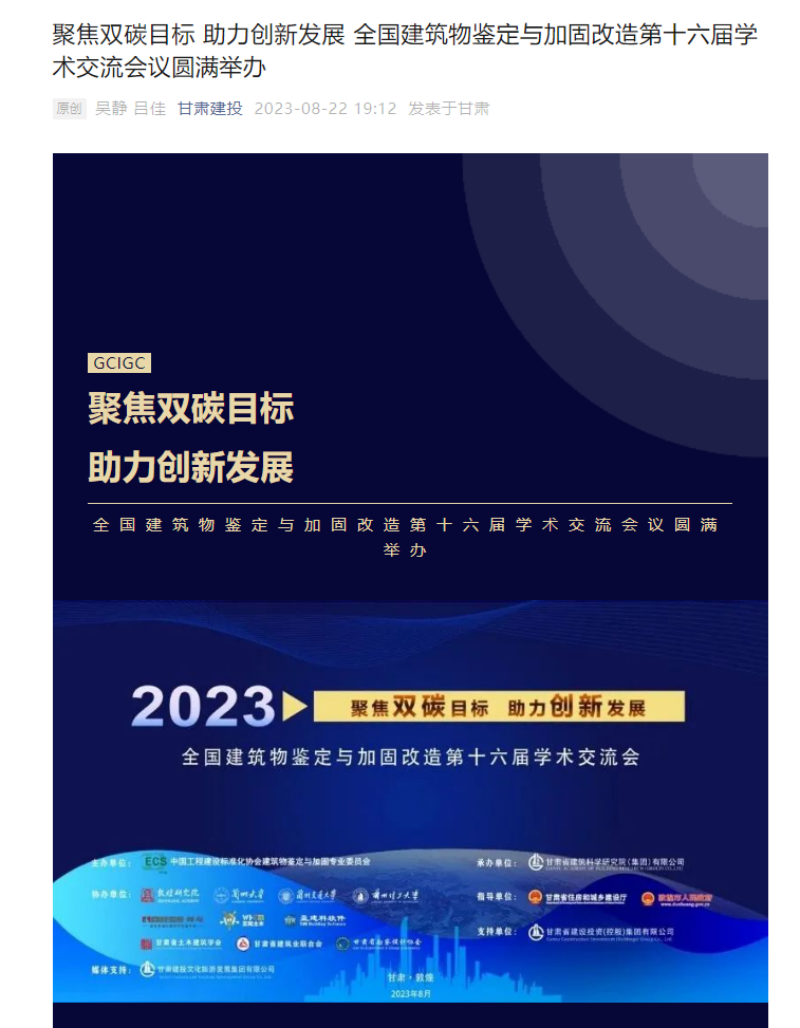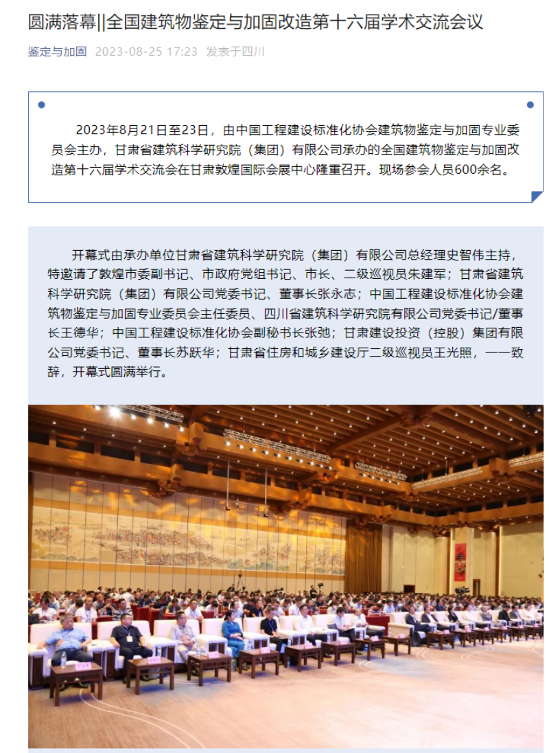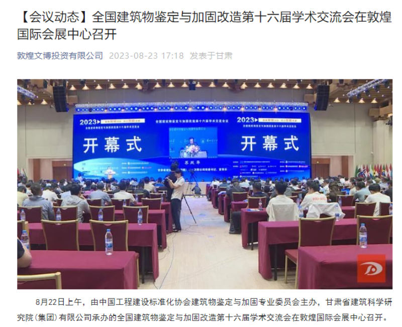 8月21日-8月24日,全國建筑物鑒定與加固改造第十六屆學術交流會在甘肅敦煌召開,由掌上敦煌、視聽甘肅、甘肅建科院視頻號平臺對會議現場進行直播,多家主流媒體紛紛聚焦報道。