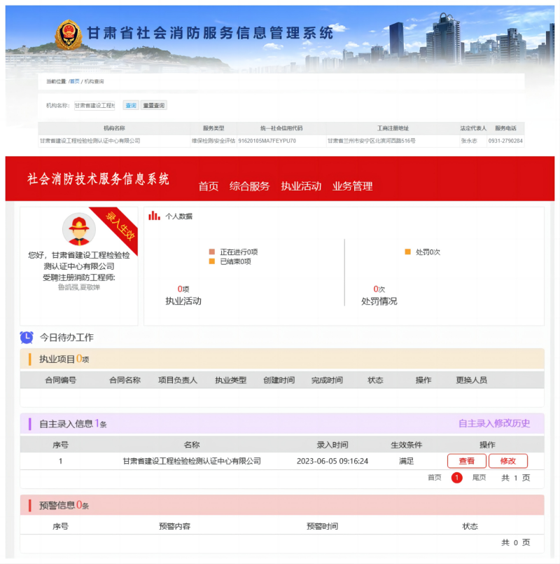 近日,經甘肅省消防總隊審核批準,甘肅建科院所屬子公司甘肅省建設工程檢驗檢測認證中心有限公司順利取得消防設施維護保養檢測及消防安全評估資質。