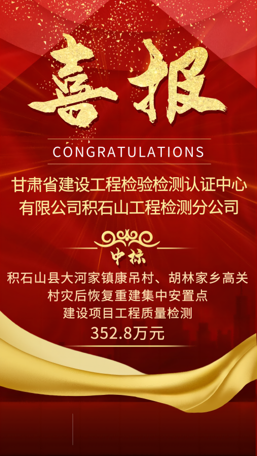 喜報(bào)!甘肅省建設(shè)工程檢驗(yàn)檢測認(rèn)證中心有限公司積石山工程檢測分公司中標(biāo)!