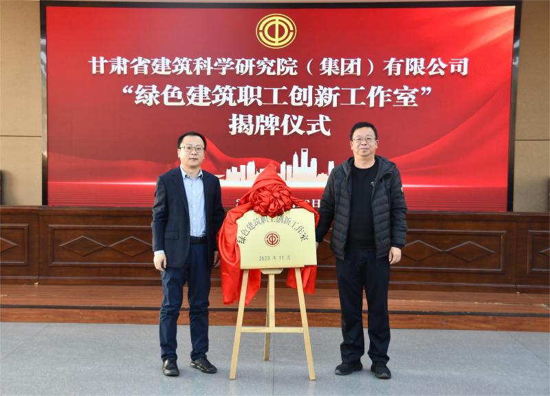 甘肅建科院“綠色建筑職工創新工作室”2022年4月申報,同年8月獲批成立。2023年11月22日組織揭牌儀式。甘肅省建設工會工作委員會主任杜曉烽、甘肅省住房和城鄉建設廳科技教育處副處長栗軍平、甘肅建投工會副主席、群眾工作部部長葛澤一行出席儀式,甘肅建科院領導班子成員和各部室負責人參加儀式。甘肅建科院紀委書記、工會主席趙欣主持揭牌儀式。