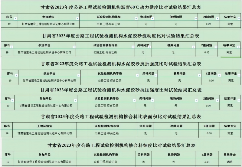 比對試驗(yàn)是通過多個試驗(yàn)室間比對來確定試驗(yàn)室檢測能力的活動,也是考察試驗(yàn)室運(yùn)行是否滿足質(zhì)量管理要求的主要手段。甘肅省建設(shè)工程檢驗(yàn)檢測認(rèn)證中心有限公司作為甘肅省公路工程綜合乙級檢測單位參加本次比對試驗(yàn),單位各級領(lǐng)導(dǎo)高度重視,市政公路專業(yè)事業(yè)部積極組織檢測人員參與本次公路行業(yè)比對試驗(yàn),安排檢測人員對照檢測儀器設(shè)備、檢測環(huán)境、數(shù)據(jù)分析嚴(yán)格按照操作規(guī)程及作業(yè)指導(dǎo)書要求進(jìn)行檢測,并根據(jù)本次比對試驗(yàn)的視頻要求對整個試驗(yàn)過程進(jìn)行了全程錄像。甘肅省建設(shè)工程檢驗(yàn)檢測認(rèn)證中心有限公司試驗(yàn)結(jié)果Z比分?jǐn)?shù)均小于2.0,六項檢測參數(shù)均取得滿意結(jié)果。通過本次比對試驗(yàn)證明,甘肅省建設(shè)工程檢驗(yàn)檢測認(rèn)證中心有限公司在人員、設(shè)備、環(huán)境、試驗(yàn)方法掌握等各方面均持續(xù)保持較高的檢測技術(shù)能力,符合上級主管部門對試驗(yàn)檢測機(jī)構(gòu)持續(xù)保持檢測能力的要求。