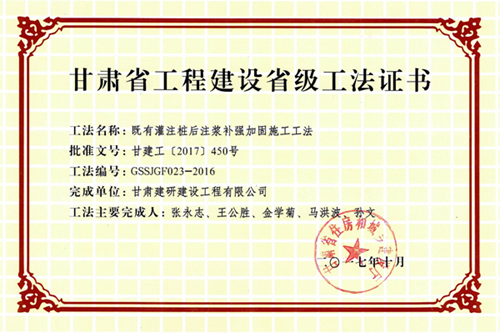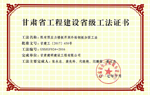 由我院科技研發中心完成的《既有灌注樁后注漿補強加固施工工法》和協助建研建設公司完成的《既有預應力樓板開洞外粘鋼板加固工法》兩項施工工法,在獲得甘肅建投優秀工法一、二等獎后,又獲得甘肅省工程建設省級工法。近年來科技研發中心始終秉承“生產帶動科研,科研促進生產”的主體思想,始終堅持以院科技發展要求為導向,把握科研主線。在進行科研項目研究的過程中,不斷探索、尋求生產與科研相結合,不斷促進科研成果轉化,推動院科技創新發展、加快科技轉型步伐,爭做創新發展的先鋒!