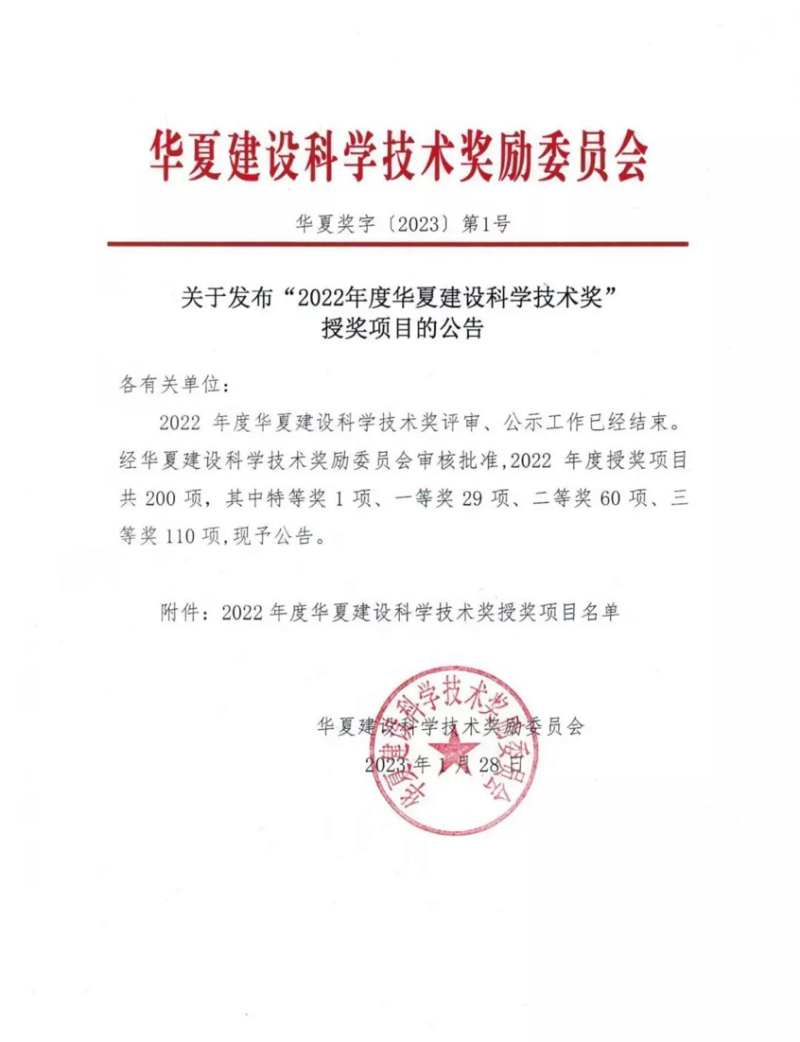 2023年1月28日,2022年度華夏建設科學獎項名單揭曉,甘肅建科院和中國建科院等單位合作的“既有住宅梯井一體化裝配式加梯關鍵技術研發與應用”榮獲二等獎。
