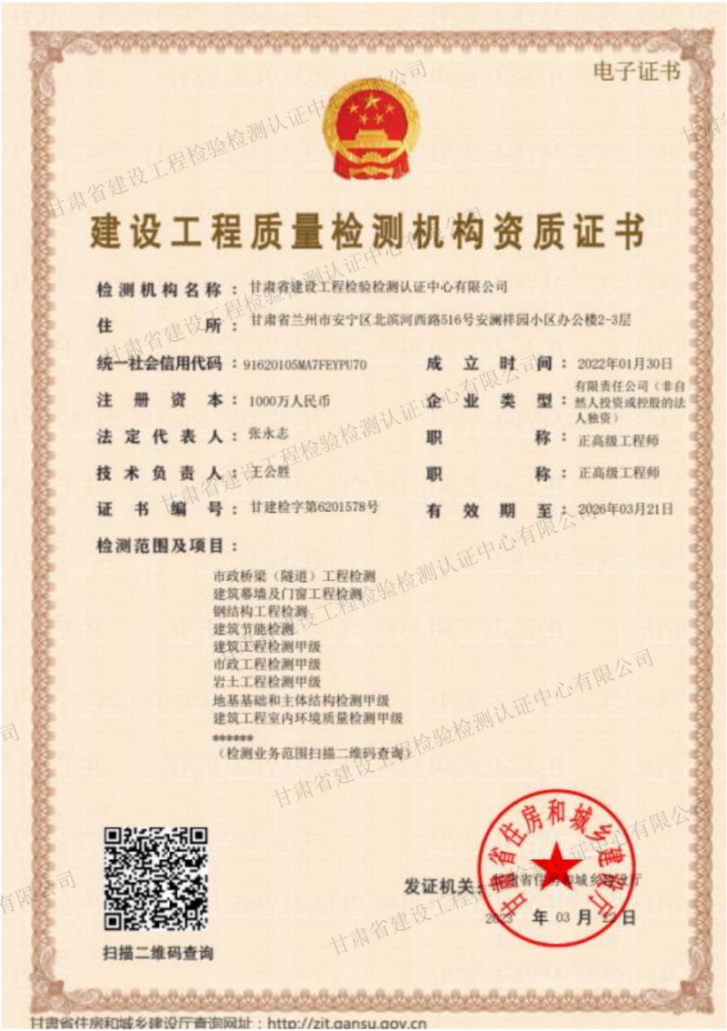 近年來,甘肅建科院以提升核心競爭力為導(dǎo)向,以強(qiáng)化戰(zhàn)略管理、優(yōu)化產(chǎn)業(yè)板塊、完善激勵(lì)約束為抓手,聚焦重點(diǎn)難點(diǎn),補(bǔ)齊短板弱項(xiàng),堅(jiān)持檢驗(yàn)檢測、咨詢服務(wù)、特種施工、產(chǎn)業(yè)產(chǎn)品并行的“1+N”發(fā)展模式,提升了企業(yè)的核心動(dòng)能。成立建設(shè)工程檢驗(yàn)檢測認(rèn)證中心公司是做精檢測、做優(yōu)服務(wù)的重要措施之一。該公司已獲得甘肅省市場監(jiān)督管理局核準(zhǔn)頒發(fā)的檢驗(yàn)檢測機(jī)構(gòu)資質(zhì)認(rèn)定證書和甘肅省住房和城鄉(xiāng)建設(shè)廳頒發(fā)的建設(shè)工程質(zhì)量檢測機(jī)構(gòu)資質(zhì)證書。