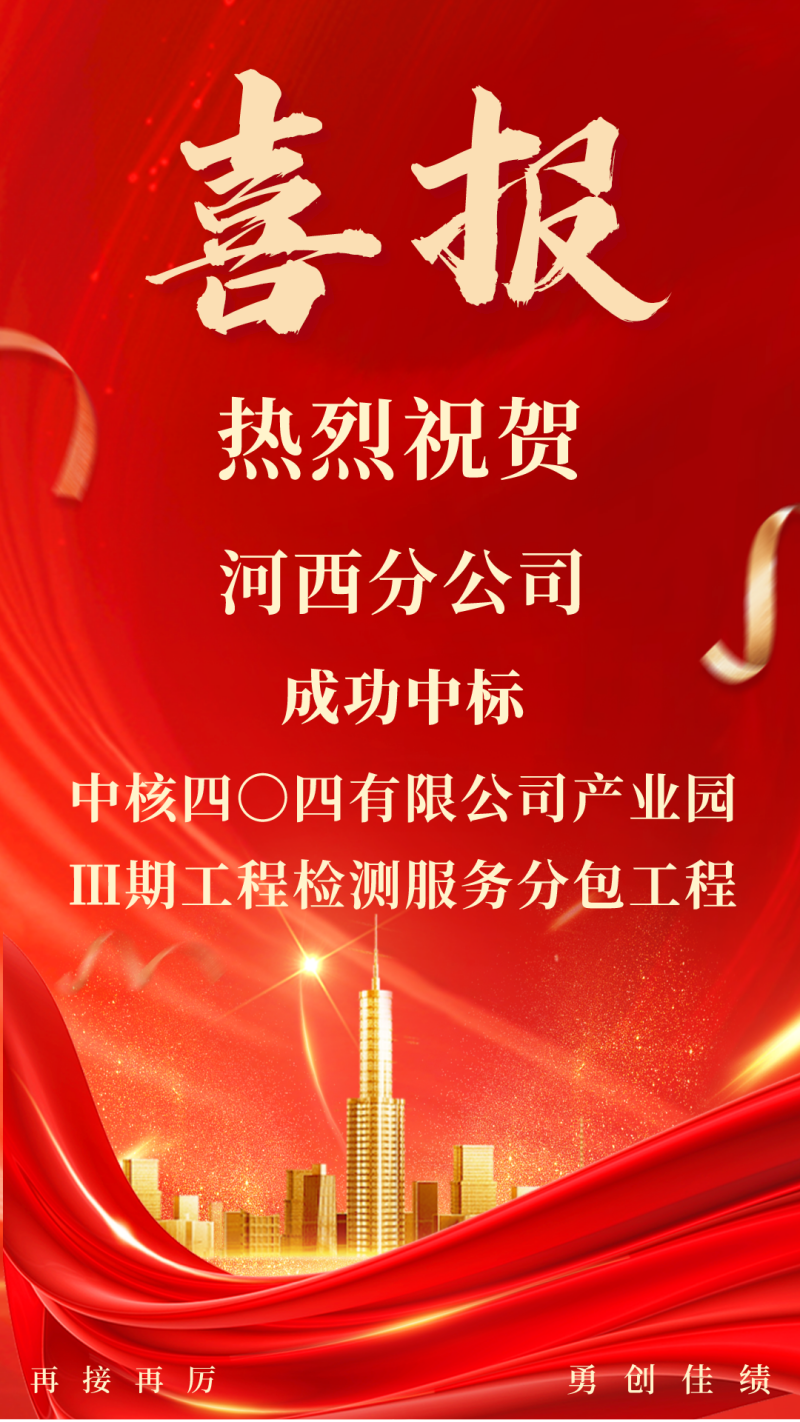 2月27日,河西分公司成功中標中核華辰建筑工程有限公司承建的中核四0四有限公司產(chǎn)業(yè)園Ⅲ期工程檢測服務(wù)分包工程。