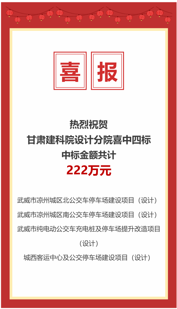 【喜報】熱烈慶祝甘肅建科院設計分院喜中四標