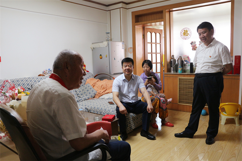集團公司副總經理陳志亮,建科院公司黨委書記、董事長張永志及機關部室相關負責人一行看望了67年黨齡的離休黨員崔巨貴老人,向老人送上了黨的溫暖和關懷。當看到老人精神矍鑠、性格開朗、身體健康時,大家都非常高興,囑咐老人的子女們要繼續照顧好家里的“寶貝”,讓老人心情舒暢,享受幸福的晚年?!包h對我太好了,公司經??赐遥€幫我解決實際困難,這在舊社會是想都不敢想的事情,感謝你們,感謝中國共產黨和甘肅建投黨委!”臨別前,崔巨貴老人還特別囑咐道,要按時給黨組織交納黨費。