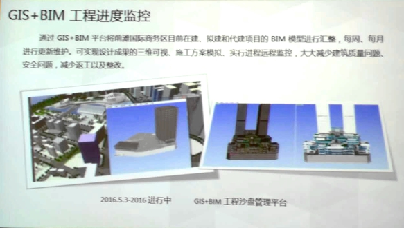 智慧前灘的管理運營主要借助兩大平臺:綜合管理平臺、公眾服務平臺。綜合管理平臺使用BIM技術制作整個前灘國際商務區三維模型,包含道路、地塊、建筑以及市政設施。BIM應用于智能建筑物業及設施管理(BIM+FM)已成趨勢。另外,通過BIM+GIS將前灘商務區目前在建、擬建和代建項目的BIM模型進行匯總、每周、每月進行更新維護??蓪崿F設計成果的三維可視、施工方案模擬、實行進程遠程監控,大大減少建筑質量問題、安全問題,減少返工以及整改。