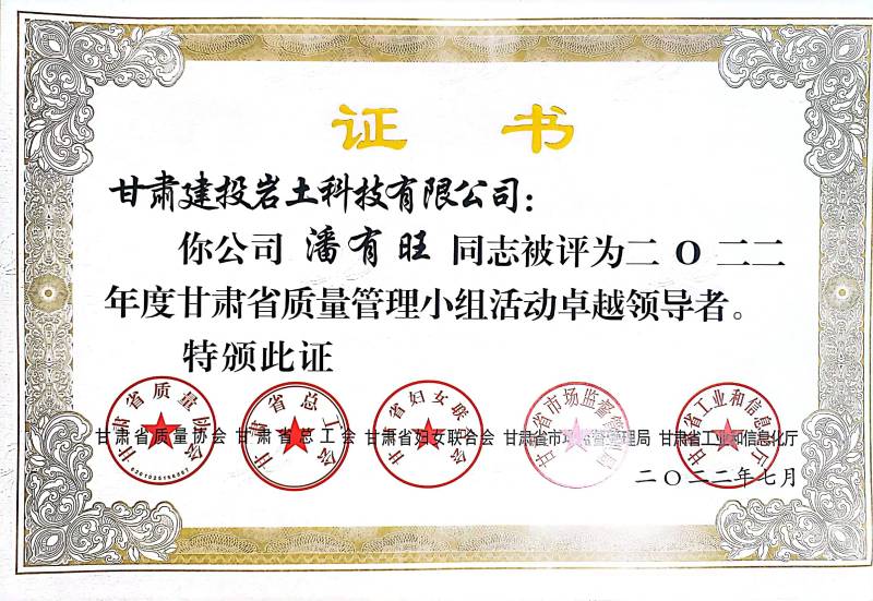 近日,由甘肅省質量協會、甘肅省總工會、甘肅省婦女聯合會、甘肅省市場監督管理局、甘肅省工業和信息化廳聯合舉辦的2022年度質量管理小組活動成果競賽評審結果發布,甘肅省建筑科學研究院甘肅建投巖土科技取得了優異的成績。“研制含水紅砂巖地層基坑支護噴錨施工技術”課題獲得省級特等獎,“提高基坑支護鋼管樁一次性施工合格率”課題獲得省級一等獎,“降低基坑支護土釘墻細骨料浪費率”課題獲得省級二等獎。同時,兩名科技工作者分別獲評“甘肅省質量管理小組活動卓越領導者”“甘肅省質量管理小組活動優秀推進者”稱號。