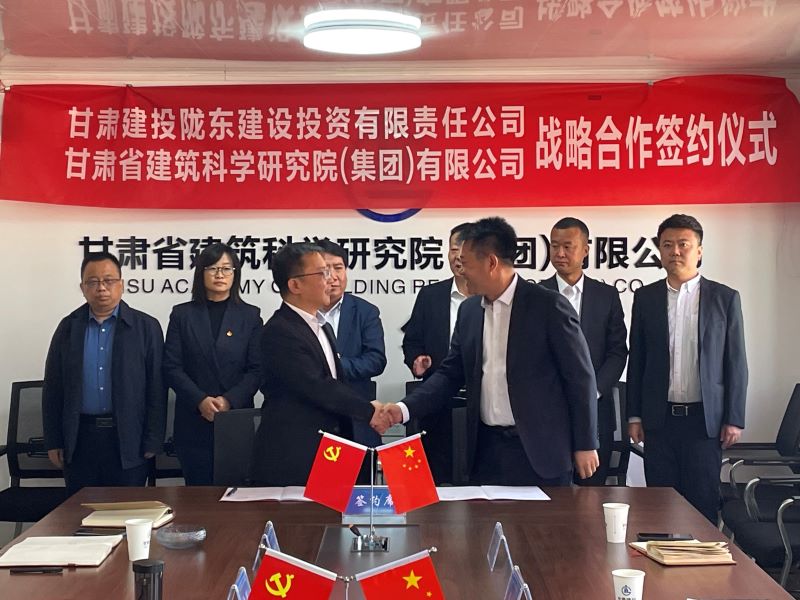 甘肅建科院黨委副書記、總經理史智偉與甘肅建投隴東建設投資有限責任公司副總經理許開春簽訂《戰略合作協議》。
