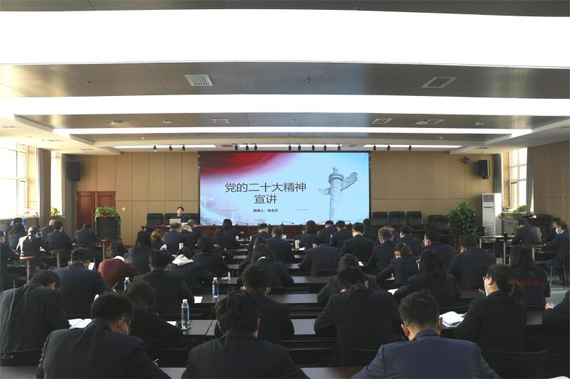 12月23日,甘肅建科院黨委書記、董事長(zhǎng)張永志在建研大廈12樓為全司黨員干部職工宣講黨的二十大精神。公司領(lǐng)導(dǎo)班子成員、主管級(jí)干部和部分黨員共120余人參加了會(huì)議。