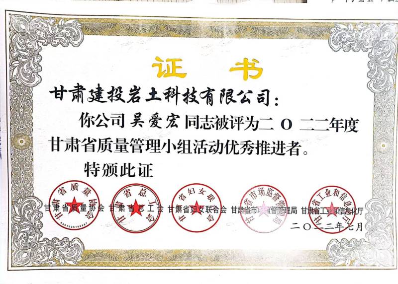 近日,由甘肅省質量協會、甘肅省總工會、甘肅省婦女聯合會、甘肅省市場監督管理局、甘肅省工業和信息化廳聯合舉辦的2022年度質量管理小組活動成果競賽評審結果發布,甘肅省建筑科學研究院甘肅建投巖土科技取得了優異的成績。“研制含水紅砂巖地層基坑支護噴錨施工技術”課題獲得省級特等獎,“提高基坑支護鋼管樁一次性施工合格率”課題獲得省級一等獎,“降低基坑支護土釘墻細骨料浪費率”課題獲得省級二等獎。同時,兩名科技工作者分別獲評“甘肅省質量管理小組活動卓越領導者”“甘肅省質量管理小組活動優秀推進者”稱號。
