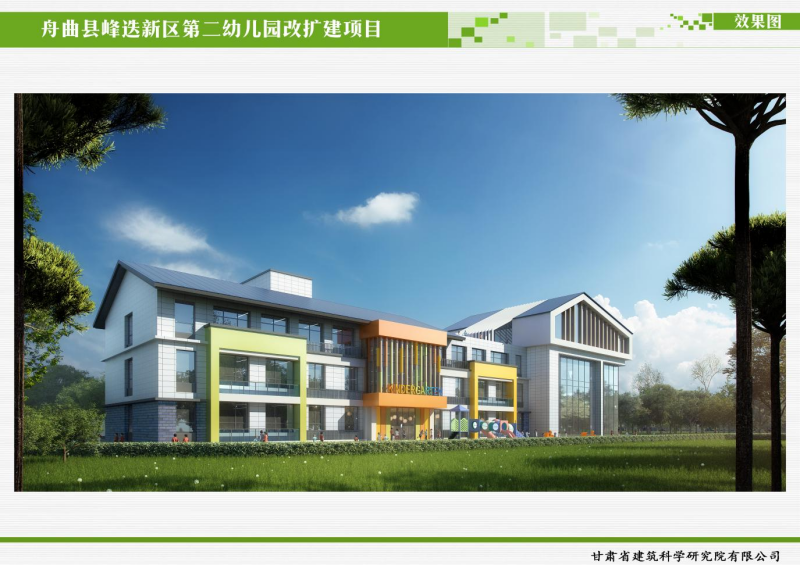 舟曲縣峰迭新區第二幼兒園項目工程為框架結構,總建筑面積2687.48㎡,新建消防水池及水泵房1座,新建門房1座。為保證幼兒的安全,項目在實施過程中采用了隔震支座,減低地震對建筑物造成的危害。項目建成后,將有效緩解舟曲峰迭新區幼兒入園難的問題,為周邊適齡幼兒提供優質教育提供環境優美、設施齊全、功能完備的學習、生活場所。